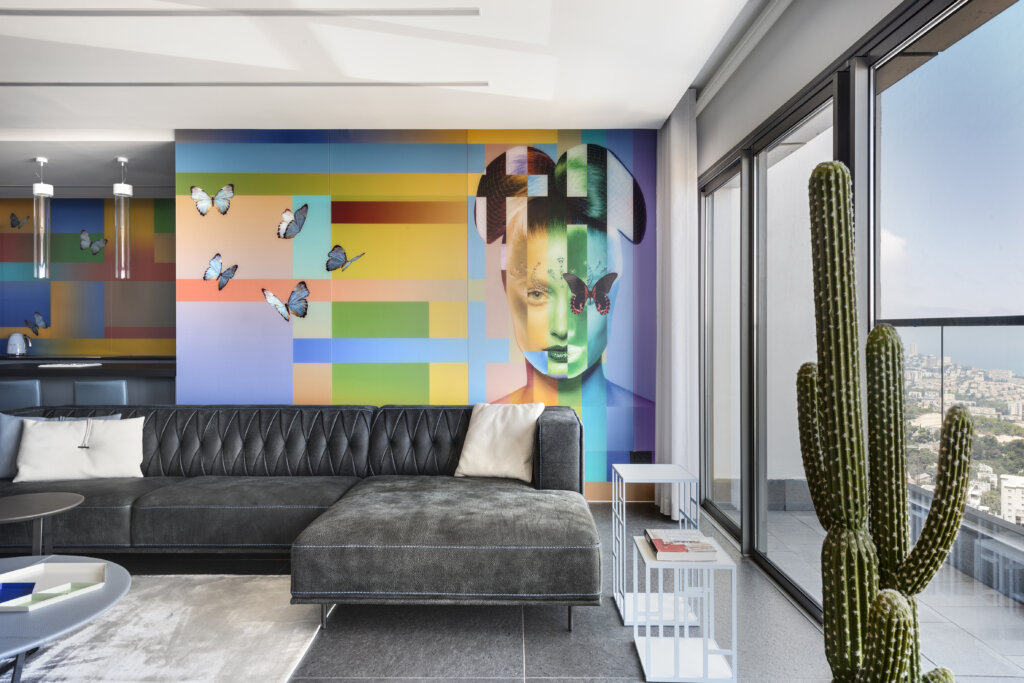 הסלון מתוכנן כך שיוכל לארח בנוחות – עם תאורה דימרית, פינת ישיבה נוחה ולעיתים גם בר קטן ליין.