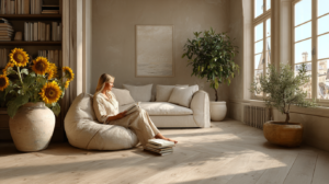 karshhilit_a_woman_reading_in_her_living_room_sitting_on_the_fl_97519bcf-8a0d-419c-ac00-64cd528ccbbc
